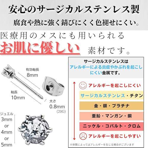 ✅【人気のシンプルデザイン】キュービックジルコニアに安定感のある6本爪の台座を取り付けたシンプルなデザインは、オフィスカジュアルから普段使い、結婚式、パーティーなどのドレスアップスタイル、様々なシーンでご使用いただける人気のピアスです。またユニセックスデザインのため、男性にも女性にもおすすめです。 ✅【選べる16カラー&3サイズ】人気の16カラーとジュエルサイズ3mm、4mm、5mmの3サイズをご用意いたしました。その日の気分やコーディネートに応じて使い分けることができます。