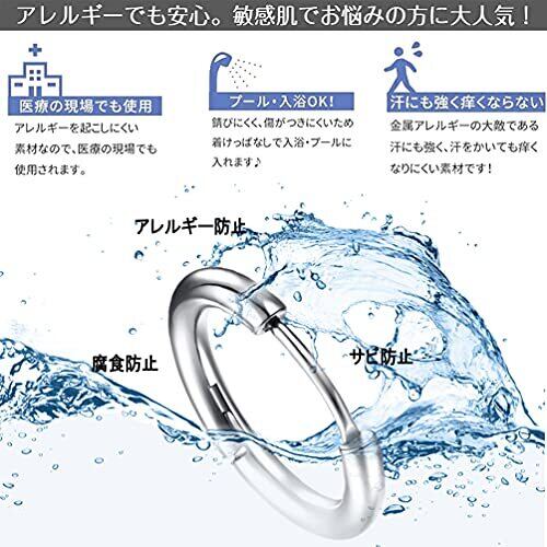 【内容】フープピアス (10個セット/6個セット) ポスト約16G 内径8mm 10mm 12mm 14mm 16mm 20mm (カラーバリエーション)シルバー、ブラック、ゴールドー、ローズゴールドー 【ノンアレルギー素材ステンレス316L】素材は医療などでも使用される316Lステンレススチールを使用しており、この素材は金属アレルギーが出にくい言われています。また汚れに強く、お手入れは布で軽い拭くだけで簡単にできます 【キャッチ不要でワンタッチ取付 】中折れ式のフープピアスはキャッチのないタイプですので、キャッチをなくす心配もありません。ポスト(針)が外に出ないので安心で引っかかりがなく、付け外しが簡単でピアスホールが痛みにくくすっきりしていておしゃれです