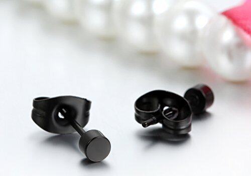 JewelryWe 丸型 ステンレス ピアス 黒色(ブラック) 2個セット 3MM ボディピアス ダンベル メンズ レディース 【片耳ピアス/軟骨ピアス】