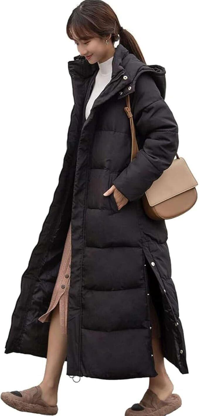 [ハト] ベンチコート ロングダウンコート レディース ベンチコートレディース ダウンコート 冬 可愛い フード付き ダウン 中綿 膝丈 アウター ロングコートジャンパー 上着 ファッション