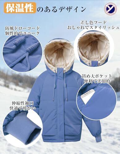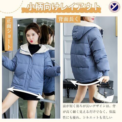 【强力保温】レディース向けの防寒着中綿ジャケット、このアウターは高品質の中綿を充填し、秋から冬にかけての厳しい寒さをしっかりとブロックし、暖かさを長時間キープします。厚手の外層はポリエステルファイバーでできており、防風性抜群で保温性にも優れ、触り心地も柔らかく、冬のアウターとして最適です。フード付きのデザインで首元まで暖かく包み込み、通勤通学時の防寒対策にぴったりです