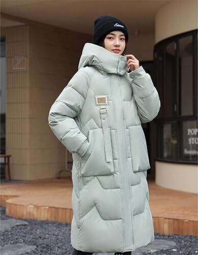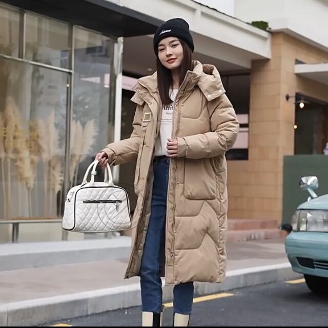 【防寒ロングデザイン & 防風フード】膝下までしっかりガードするベンチコートで、足元まで冷えから守ります。高密度素材とふわふわ中綿が冷たい風を遮断。付属のフードで頭部も防寒可能な、寒い季節に頼りになるロングコートです。