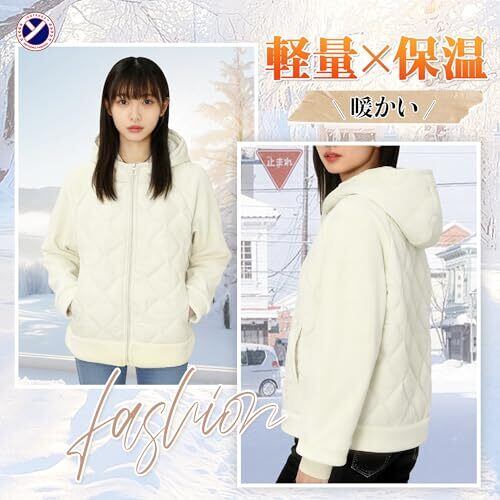 [inotenka] コート レディース キルティング ショート丈 アウター フード付き 中綿ジャケット 防寒 軽量 暖かい 中綿コート 無地 カジュアル 通勤 秋冬 S-XL