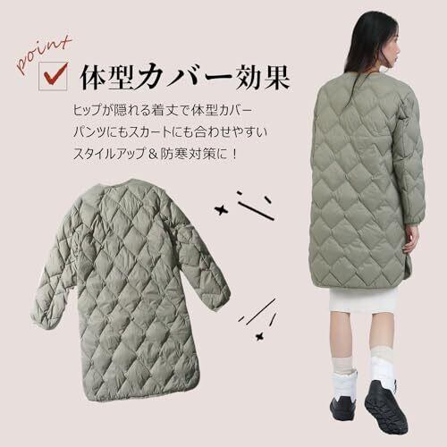 [Minax] ダウンジャケット レディース ロング 体型カバー 2WAY 軽量 防風 暖かい 防寒 保温 無地 カジュアル 収納袋付き おしゃれ 268