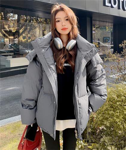 [Kayiyasu] ダウンコート レディース 中綿ジャケット フード付き ショート丈 アウター 秋冬 防寒 暖かい 厚手 ゆったり 韓国風 可愛い カジュアル 通勤 通学