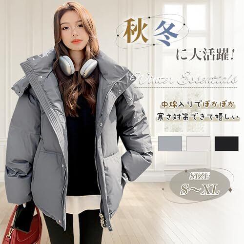 [Kayiyasu] ダウンコート レディース 中綿ジャケット フード付き ショート丈 アウター 秋冬 防寒 暖かい 厚手 ゆったり 韓国風 可愛い カジュアル 通勤 通学