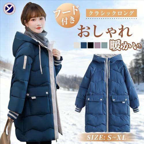 [inotenka] ロング コート レディース 防寒着 アウター 秋冬 フード付き 中綿ジャケット ベンチコート 厚手 アウトドア シンプル 冬服 暖かい 通勤 通学 大きいサイズ S-XL