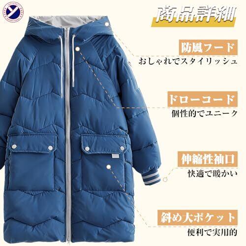 【ロング丈・高保温性】レディース向けのロング防寒着コートとして、この冬服は記憶綿を充填し、秋から冬にかけての厳しい寒さをしっかりとブロック。厚手の外層はポリエステルファイバーで、防風性に優れ、暖かさを長時間キープ。フード付きで首元まで暖かく包み込み、通勤通学時の防寒対策に最適です。長いデザインで、足元から頭までしっかりと温め、冬の寒さに暖かいアウターです