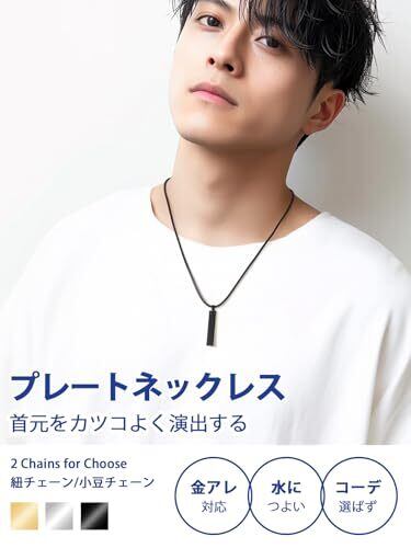 [PROSTEEL] プレート ネックレス ペンダント メンズ シンプル サージカルステンレス 金属アレルギー対応 付けっぱなし 長さ55cm 小豆チェーン/紐チェーン