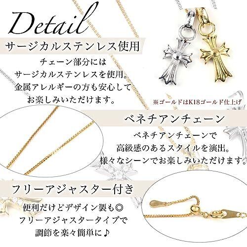 【Aneige アネージュ】 スタイリッシュな十字架ネックレスで金属アレルギー対応で安心して使用できます。 【商品サイズ・素材】 ペンダントトップ:縦:約15mm 横:約10mmです。素材はサージカルステンレスでK18ゴールドコーティングを施しました。メインストーン:スワロフスキージルコニア【チェーン】太さ:1mm / 長さ:50cm ベネチアチェーン / チェーンはフリーアジャスター付きです。 【スタイル】スタイリッシュな十字架ネックレス!金属アレルギー対応で安心です。シンプルなネックレスなので メンズ・レディースに人気のアネージュのクロスネックレス。サージカルステンレス製の高品質アクセサリーです。