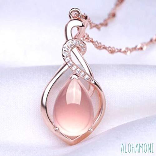 【デザイン】首元を美しくみせてくれるピンクオパールネックレスです♪ 涙・しずく型の優しいピンク色で、派手すぎず、上品な印象になります♪ ピンクオパールは桜のようなやわらかい色で、近年ジュエリー素材として人気のストーンです♪ 透き通る様な上質のピンクオパールの周りには、キュービックジルコニアダイヤが輝きくデザインとなっています♪ チェーンはピンクゴールドで、可愛さと品の良さを合わせ持ち、女性らしさをアップしてくれるデザインです♪ 『ALOHAMONI』オリジナル商品です♪ (JANコード取得済み)