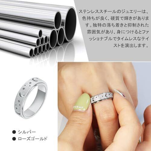 フィジェットリング ストレス解消 リング 暇つぶし 不安解消 リング フィジェットトイ リラックス ステンレス 指輪 手遊び 大人 おしゃれ 星 月 リングスピナー シルバー 日本サイズ22号
