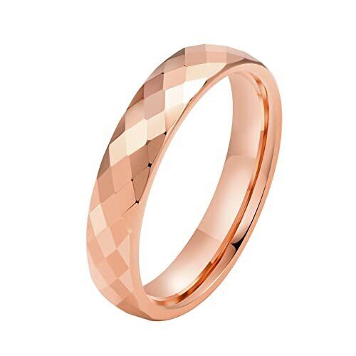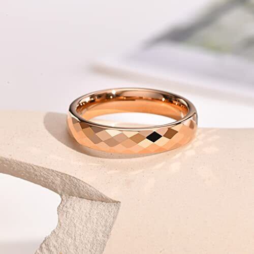 [Rockyu] ジュエリー タングステン リング 多面カット メンズ レディース 指輪 4mm 人気ブランド シンプル 菱面指輪 シルバー ゴールド ブルー ピンクゴールド 鏡面加工 キラキラ マッド質感 男女兼用 ファッション アクセサリー
