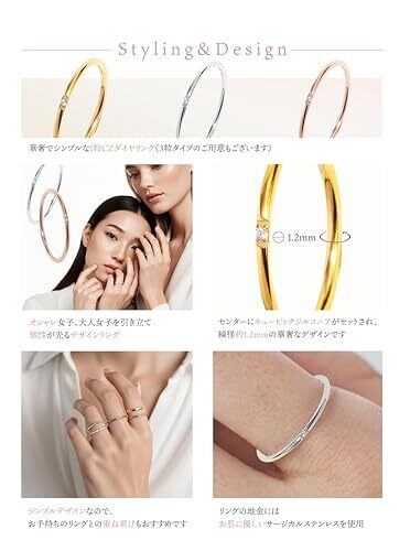 [GREG] リング 指輪 金属アレルギー対応 ニッケルフリー 錆びにくい K18GP キュービックジルコニア ステンレス 1.2mm 華奢 レディース メンズ 4号~21号 czダイヤ 1粒タイプ