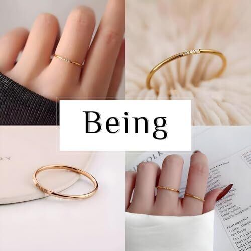 [Being] 指輪 3ストーンリング 316Lサージカルステンレス 18Kゴールドコーティング キュービックジルコニア 極細 シンプル 重ね付け可