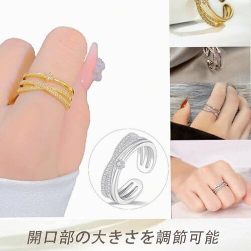 [AUTAKI] リング 指輪 レディースリング ジルコニア ステンレス ピンキーリング レディース ファッション 調整可能 フリーサイズ ダブル 2連風 誕生日 ギフト おしゃれ ジュエリー