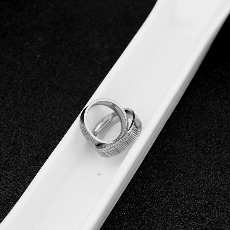 AREUM リング 指輪 バーコード ステンレスリング かっこいい シンプル メンズ レディース コードリング
