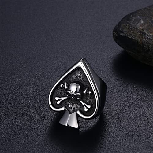 Aroncent 髑髏 指輪 メンズ スペード トランプ ステンレス リング レトロ ロック パンク ゴシック スカル メンズ ファッション アクセサリー バレンタインデー クリスマス プレゼント