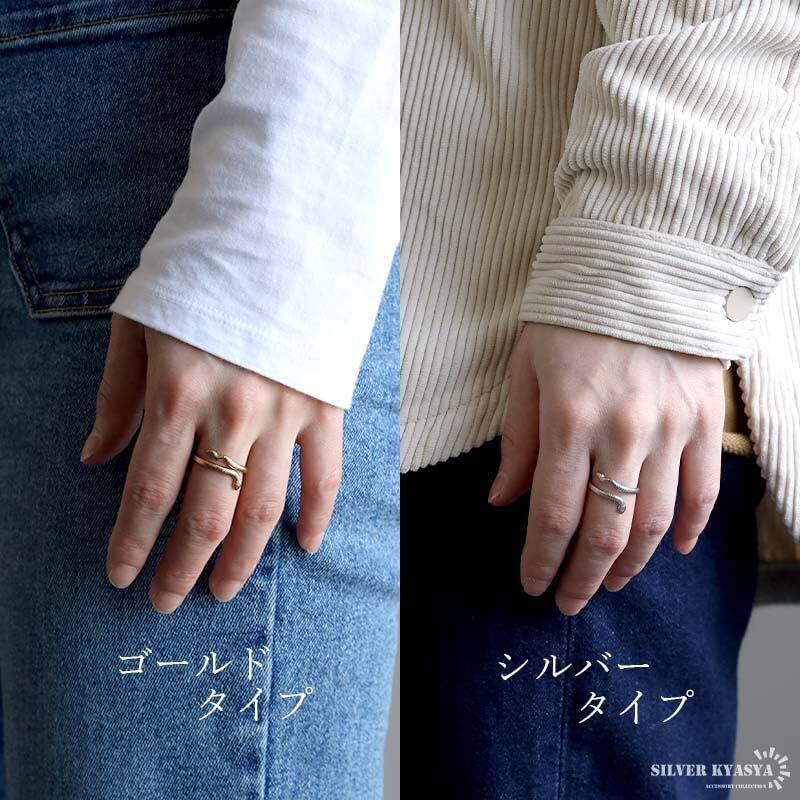 [silver KYASYA]スネークリング 巻き付く 蛇リング 指輪 18KGP ゴールド シルバー ステンレス 細め 凹凸 個性的 レディース フリーサイズ 金属アレルギー対応