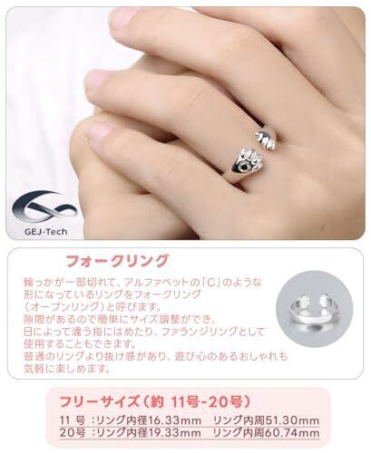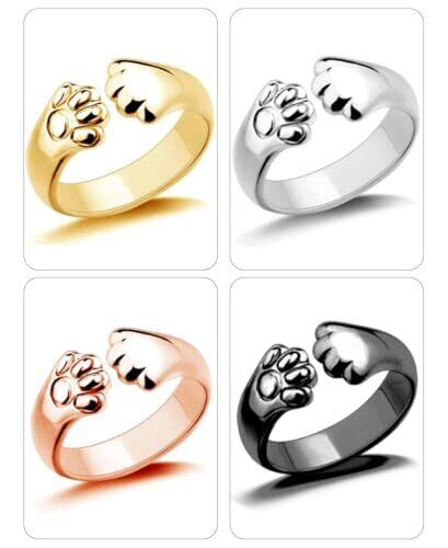 [GEJ-Tech] レディース リング 猫 肉球 指輪 フリーサイズ(11号-20号) フォークリング 猫アクセサリー