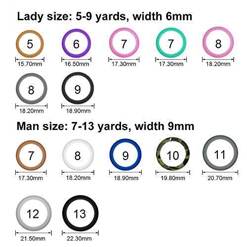 14個のシリコンリング:異なる色のスタイリッシュなリング14個付き。 ソフトで人気のスタイルで、スポーツでも快適で安全です。 お友達へのユニークで素敵なギフト。 安全で快適:シリコン製の結婚指輪は、柔らかく柔軟性があり、非常に高品質です。快適な着け心地を提供します。 高品質素材:シリコン結婚指輪。丈夫で色あせせず、高温に耐性があります。 万能機能:伸縮性があり安定したシリコンリングは、さまざまな過酷な環境下でのアクティブなライフスタイルをサポートします。 サイクリング、ハイキング、登山、ボート、ウェイトリフティングなどに最適です。 大切な結婚指輪を損傷や傷から守る素晴らしい代替品です。 12種類のサイズで、さまざまなニーズやスタイルに対応します。レディースサイズのリングの幅は6mm、メンズサイズのリングの幅は9mmです。