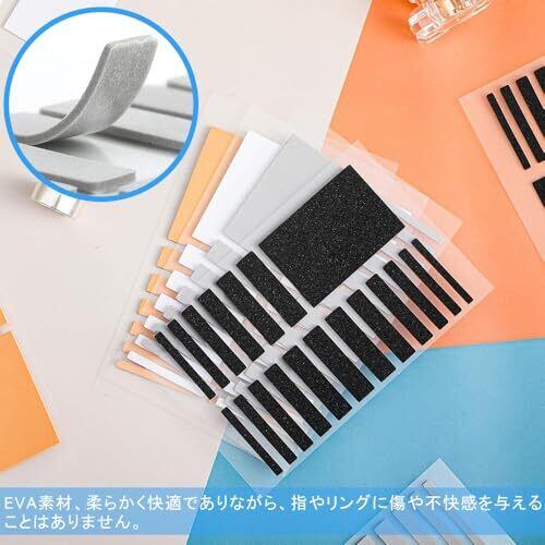 【ユニークなデザイン】このリング調整セットは、さまざまなサイズや形状のリングパッドとスプリングロープを含むユニークなデザインを採用しており、様々なサイズのリングに適合し、パーソナライズされたリング着用体験を提供します 【快適な着用感】高品質の柔らかいシリコン素材を使用しており、柔らかく快適でありながら、指やリングに傷や不快感を与えることはありません。お気に入りのリングを心地よく着用できるように、不快感の心配はいりません。 【透明なデザイン】透明なリング調整器の素材はリングの美観を損ねることなく、視覚的な効果を維持します。リングをより完璧に見せ、同時にリングをしっかりフィットさせ、快適な着用体験を提供します。