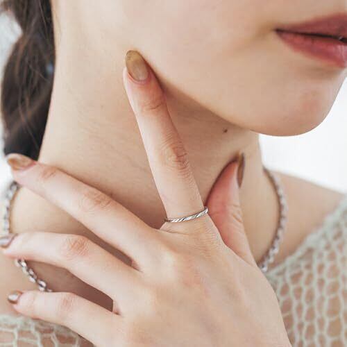 高品質サージカルステンレス製で長く使える指輪 医療用機器にも使用されるサージカルステンレス316Lを素材として採用。錆びにくく変色しにくいため、日常使いに最適なレディース指輪や、小さめのサイズだとピンキーリングとして長期間ご愛用いただけます。銀色のカラーに関しては落ち着いた色味のシルバーリングの輝きを持続し、美しい状態をキープします。 斜めにデザインが彫刻された細めの指輪。これ1つでも、他の指輪と合わせても楽しめるアイテムです。 華奢で繊細な指元を演出してくれます。重ね付けにも最適です。ペアリングとしても使用でき、男女問わず身に着けられるメンズリング・レディースリングです。7号 8号 9号 10号 11号 12号 13号 14号 15号 16号 17号 18号 19号 20号 21号