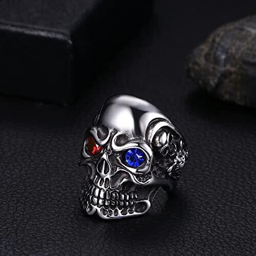 OIDEA 指輪 21号 メンズ ドクロ 髑髏 スカル リング アクセサリー ステンレス製 男性 男の子 男の人 学生 彼氏 人気 かっこいい 個性 復古 パンク ロック ヒップホップ ゴシック おしゃれ ヴィジュアル バレンタイデー ハロウィン クリスマス 新年 誕生日 記念日 プレゼント ギフト袋付き(red/bule)