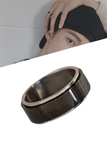 [AREUM] ヒョンジン着用モチーフ 指輪 リング ステンレス ブラック 回転 二重 straykids スキズ お洒落アイテム 韓国アクセサリー