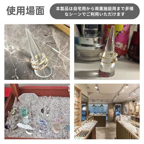 【セット内容】リングスタンド5個セット。コンパクトサイズ:約2.3×6.5cm。 【透明素材】クリアアクリル製で指輪の美しさを邪魔しません。 【省スペース収納】スリム設計で場所を取らず、1台に複数リングを整理可能。大量アクセサリー保有者に最適。 【全サイズ対応】円錐形状で細い~太い指輪を選ばずディスプレイ可能。掛け外し簡単、視認性抜群で選びやすさ向上。 【多様な活用】繊細~ボリューム感あるデザインまで対応。自宅整理から店舗陳列まで幅広く活躍。※製造工程で微細キズが稀にあります。