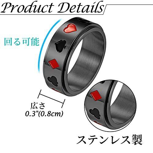 [JEWELRYWE] トランプ 指輪 ステンレス リング 回転可能 スペード ハート クラブ ダイヤ レトロ シンプル ロック パンク メンズ レディース ファッション アクセサリー ハロウィン クリスマス バレンタインデー プレゼント