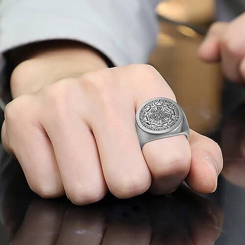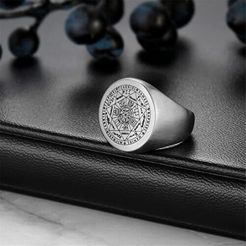 [Flongo] 7つの聖天使 六芒星 魔法陣 星 メンズ指輪 リング アンティーク ビンテージ 欧米風 中世風 ユニーク ゴシック ステンレス製 ハロウィン クリスマス 復活祭 彼氏に プレゼント ギフト袋付き