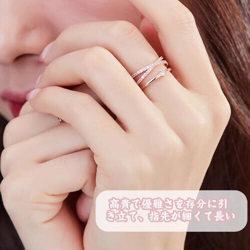 [JIMIGUGU] 指輪 リング レディース ジルコニア 交差リング 銅製 華奢細めデザイン キラキラメインストーン付き 誕生日プレゼント用 人気ジュエリー