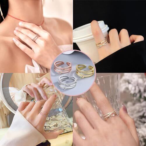 【サイズ自由調整】この指輪はフリーサイズ設計で、最も快適なサイズに簡単に調整でき、指にぴったりフィットし、究極の快適な装着感をお届けします。 【多くの色】ピンクゴールド、シルバー、ゴールド、3種類のファッションカラーからお選びいただけ、異なる服装と合わせて、それぞれ違う風情とスタイルを表現し、毎日魅力を放たせます。 【光を集める焦点】光が当たるたびに、この指輪はキラキラと輝き、精緻で華やかな光を放ち、指をスターのように輝かしく飾ります。