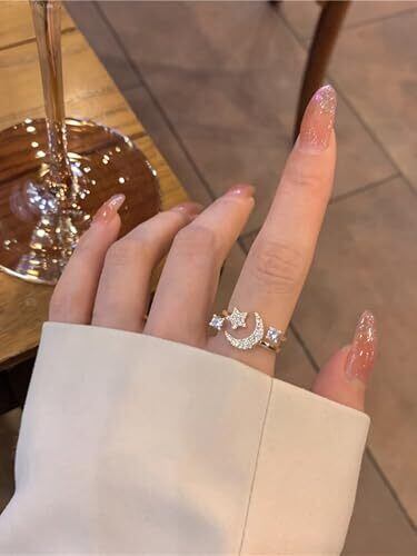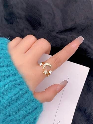 指輪 レディース キュービックジルコニア 月&星デコレーション カフリング