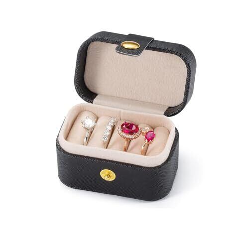 アクセサリーケース 指輪ボックス 携帯用 小箱 コンパクト 可愛い 旅行用 ジュエリーケース ジュエリー収納 リング イヤリングボックス 旅行 出張 (ブラック)