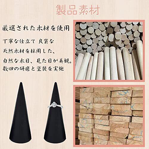 天然木 リング スタンド 指輪 スタンド (ブラック 10個)コーン 指輪置きケース 指輪の保管 収納アイテム リング表示 木造 木製 ホルダー