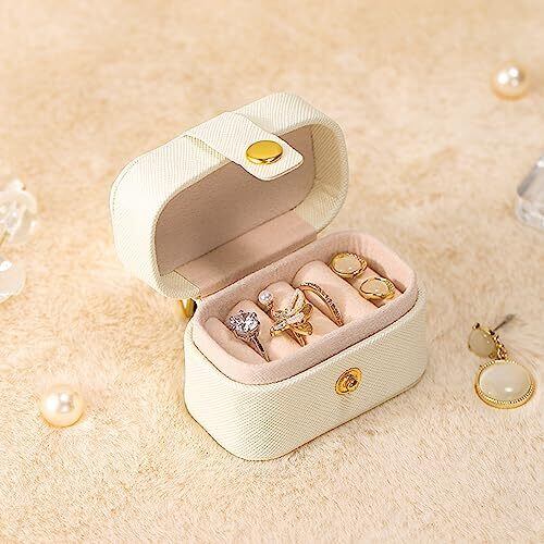 ジュエリーボックス 小箱 ジュエリー 宝石箱 持ち運び コンパクトPUレザー ジュエリー収納 アクセサリーケース 小物入れ 指輪 ピアス (ホワイト)