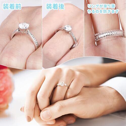 インビジブルリングサイズアジャスター - 12個入り、4サイズ - ゆるいリング用、クリアインビジブルリングリサイズ、どんなリングガードにもフィット、透明ジュエリーサイズスパイラルシリコーンタイトナー