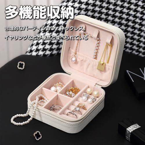 ジュエリー ケース 携帯用 ジュエリーボックス PUレザー 防水 指輪ボックスア 宝石箱 収納ケース リング ネックレス ブレスレット イヤリング 小物入れアクセサリー アクセサリー 持ち運び 収納 贈り物 (ホワイト)
