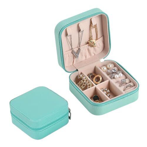 ジュエリー ケース 携帯用 ジュエリーボックス PUレザー 防水 指輪ボックスア 宝石箱 収納ケース リング ネックレス ブレスレット イヤリング 小物入れアクセサリー アクセサリー 持ち運び 収納 贈り物 (ティファニーブルー)