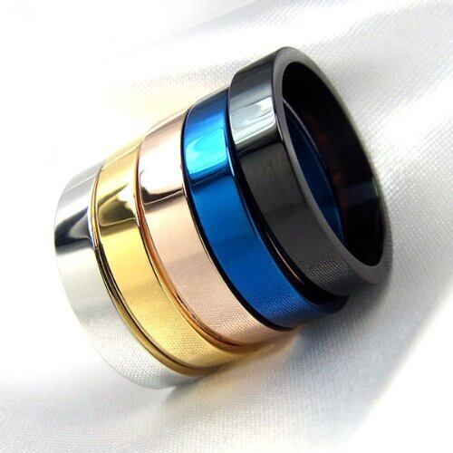サージカルステンレス製 幅4mm ペアリング マリッジリングに シルバー ピンクゴールド ブルー イエローゴールド ブラック