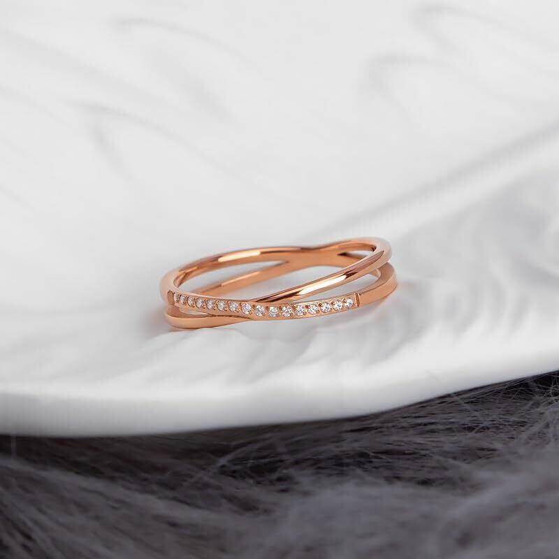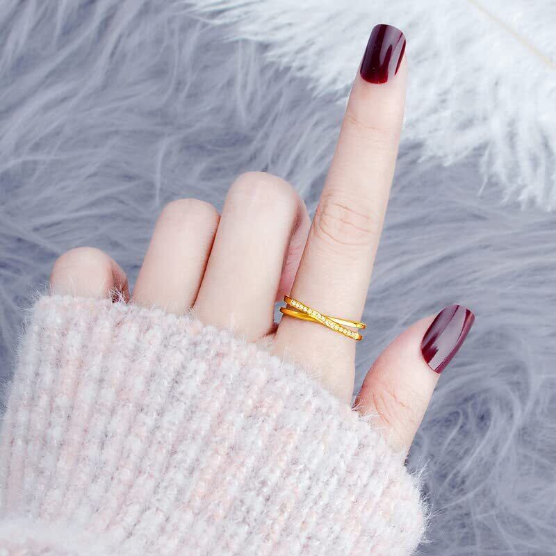 シンプルモダン クロスデザイン リング レディース チタン鋼製 ゴールド カラー キュービックジルコニア エレガント 指輪 結婚式 日常使い ギフト