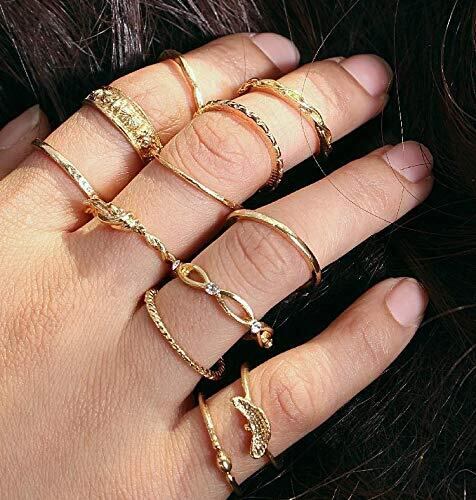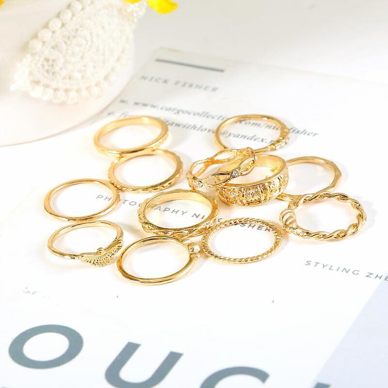 ✅【デザイン】ヴィンテージ調デザインが魅力の指輪12個セットです。ゴールドカラーが手元を華やかに彩り、8号から11号までのサイズ展開に対応。シンプルなものから個性的なデザインまで揃っており、その日の気分やスタイルに合わせて自由にコーディネートを楽しめます。重ね着けにもぴったりのセットアイテムで、組み合わせ次第でカジュアルにもエレガントにも変化をつけられます。シンプルなデザインはデイリー使いに、装飾が施されたデザインはパーティーや特別な日のアクセントとしておすすめ。12個入りのセットなので、シーンや用途に応じてさまざまな着け方ができるお得なアイテムです。