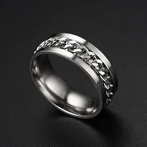 [AREUM] メンズ 指輪 リング ブランド お洒落 ステンレス チェーン付きリング 大きい 回転チェーン シンプル かっこいい トレンド ペアアクセサリー