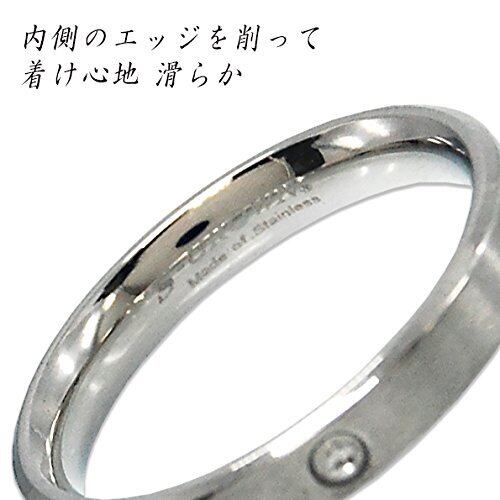■リングスペック■ 3.3mm幅 ( 内側に丸みをつけた加工のおかげで指通り滑らかで、着脱もラクラク ) ☆キュービックジルコニア 通称 CZダイヤ をインセット * キュービック とは一般の方では ダイヤモンド との差が非常にわかりにくいのでダイヤモンドの模造品としても利用される事があります。 ■素材■ サージカルステンレス... 最近のアクセサリー ブランド では シルバー925 18金 プラチナ 等と同等に注目を集めている素材です。また 金属アレルギーをおこしにくく 医療器具などにも使われている 人体にとても優しい素材です。シルバー や K18金 とは違い 錆び 変色 を起こしにくく 非常に硬い素材ですので 傷もつきにくく 普段使いでも大活躍。