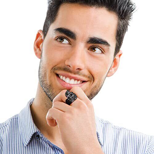 Aroncent ステンレス リング 指輪 メンズ スカル バラ 頭蓋骨 ロック パンク ゴシック レトロ 個性 メンズ ファッション アクセサリー カジュアル ビジネス ハロウィン クリスマス 彼氏 プレゼント