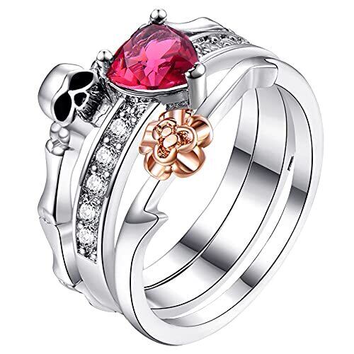 OIDEA パンクリング 指輪 レディース ツーインワン 2点セット 髑髏 スカル ハート モチーフ ジルコン 地雷系 ステンレス金属アレルギー対応 ヒップホップ ゴシック 個性 人気 告白 プロボーズ バレンタイデー プレゼント 19号