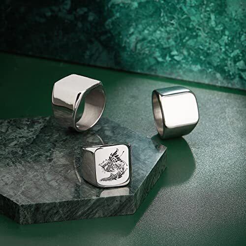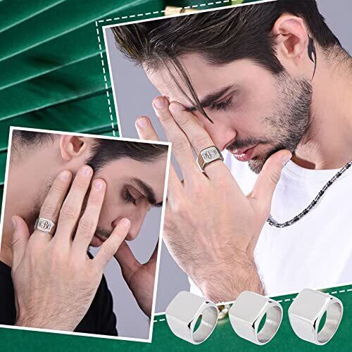 UNICRAFTALE 3個 3サイズ 指輪 メンズ 印台 おしゃれ 304ステンレス リング 幅広指輪 ブランド メンズリング 金属アレルギー対応 シンプル 人気 印台指輪 刻印 男性プレゼント