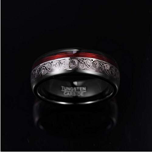 [Nuncad(ヌンカド)] 指輪 メンズ タングステン 男女兼用 アレルギーフリー シンプル 螺旋 カッコいい 鏡面仕上げ ブラック レッド 幅:8mm